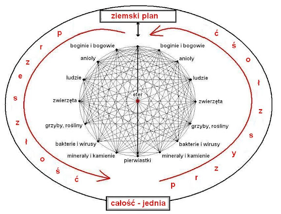 "diagram całość jednia plan ziemski..skojarzył mi się z punktem połączenia o,którym pisał Castaneda to,że świadomość różnych istot jest przyhaczona w różnych punktach ..można dotrzeć do innych punktów ucząc się jak przesuwać swoje przyhaczenie ;) "